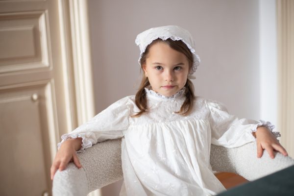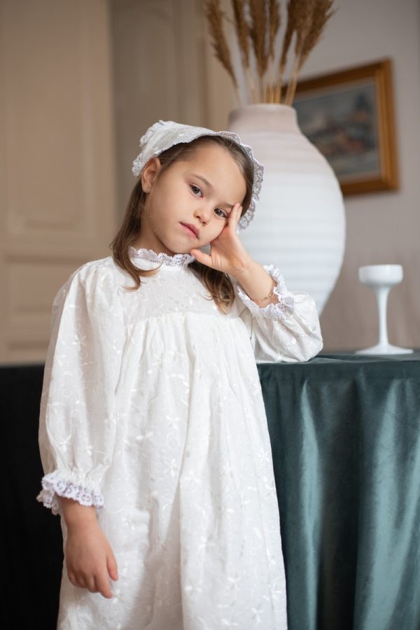 Accesoriu Annisa este realizat dintr-un bumbac alb, brodat, accesorizat cu o broderie alba pe margine.