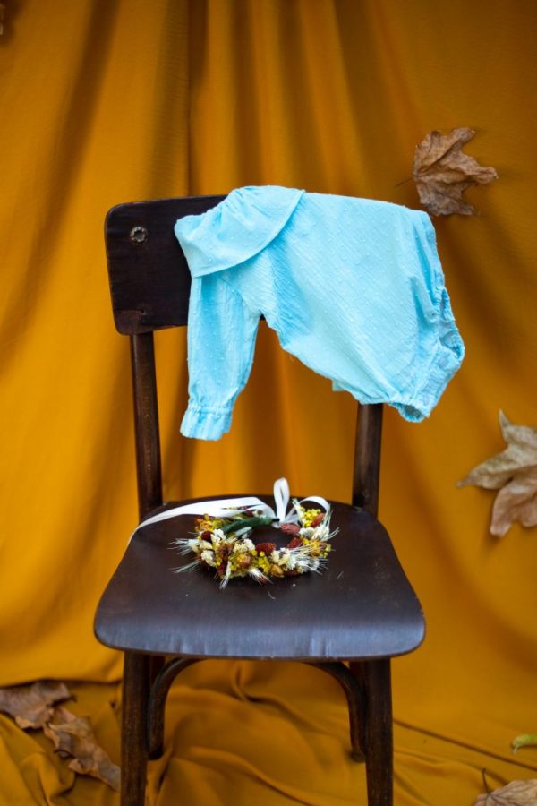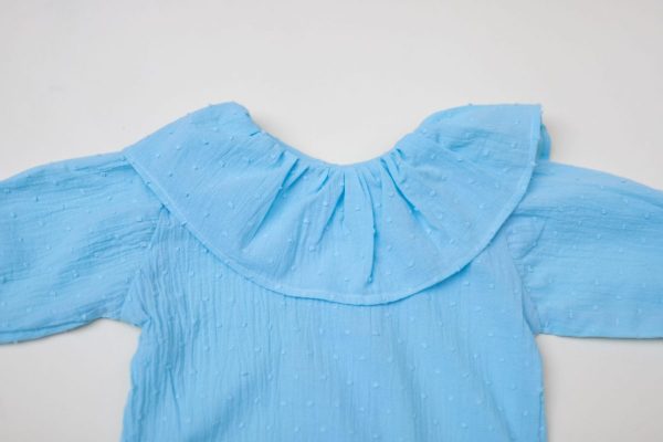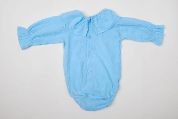 Body-ul Briand este realizat dintr-un bumbac bleu, cu buline brodate.