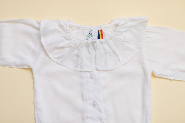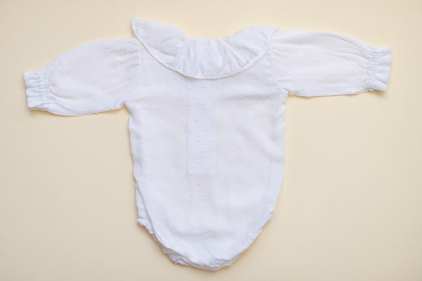 Body-ul Jacob este realizat dintr-un bumbac alb, fin si moale, cu buline brodate.