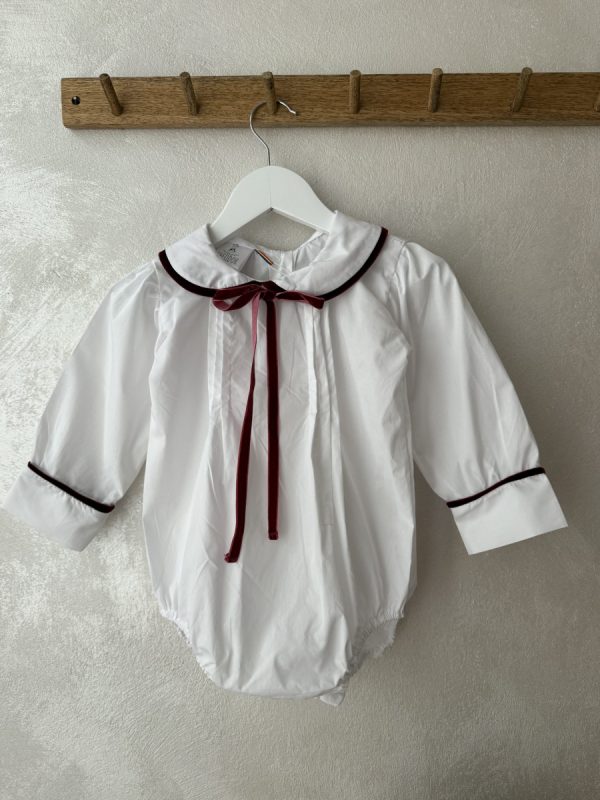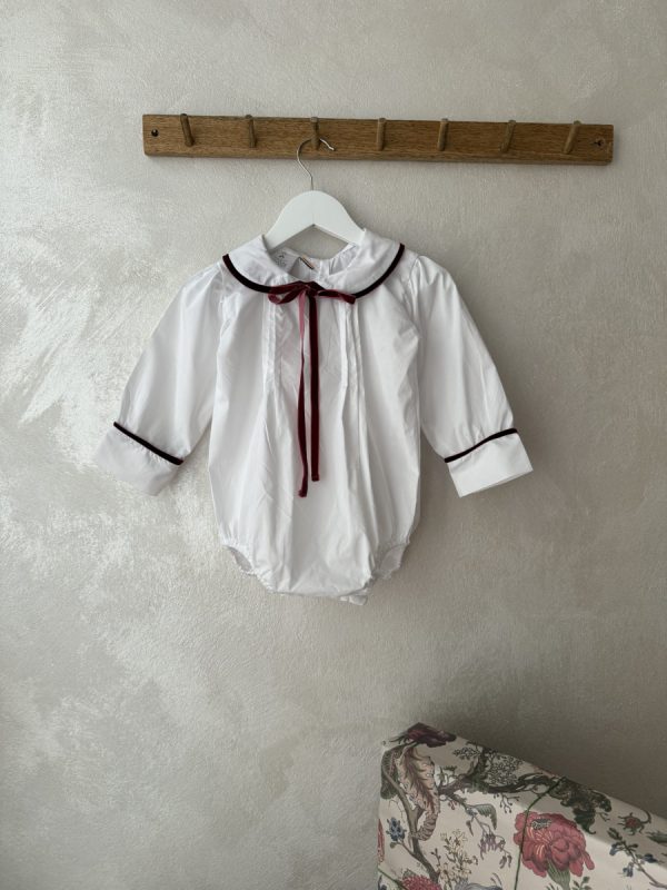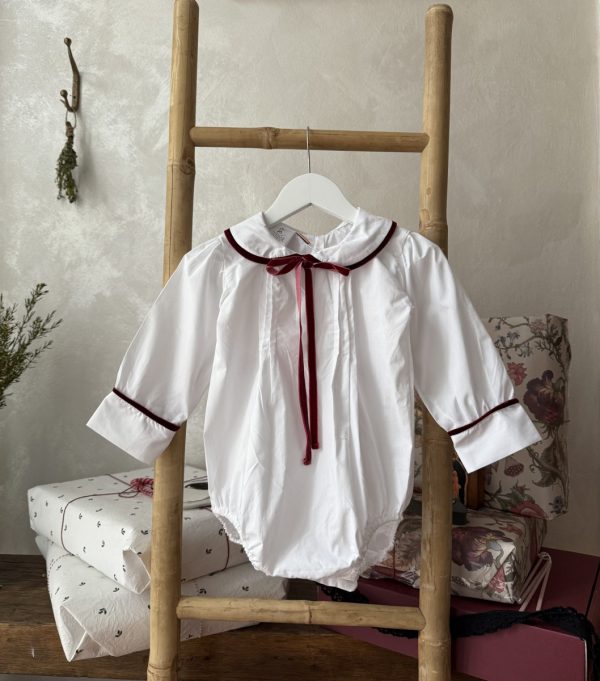 Body-ul Martha din bumbac alb cu lira grena si accesoriu detasabil grena este ideal atat pentru fetite, cat si pentru baietei.