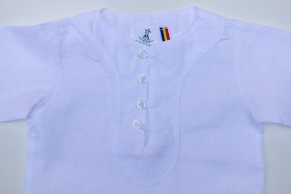 Camasa Alan este realizata din in alb moale, perfecta pentru perioada calda, lasa pielea copiilor sa respire si ei se pot juca in voie.