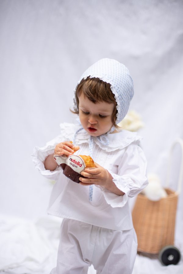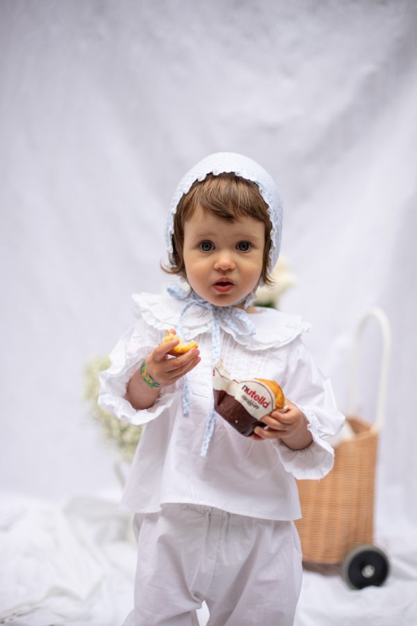 Camasa Arturo este realizata dintr-o panza alba din bumbac 100%, accesorizata cu o broderie ingusta din bumbac brodat.