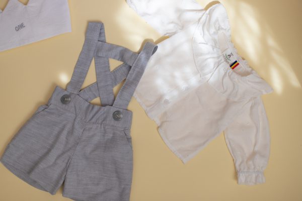 Camasa Jacob este realizata dintr-un bumbac moale cu buline brodate.