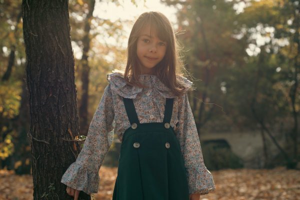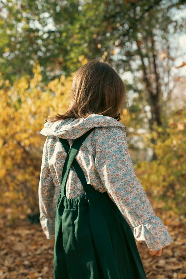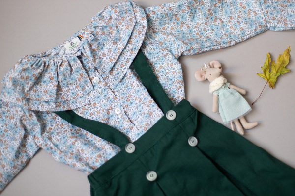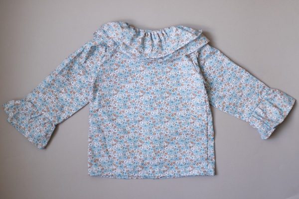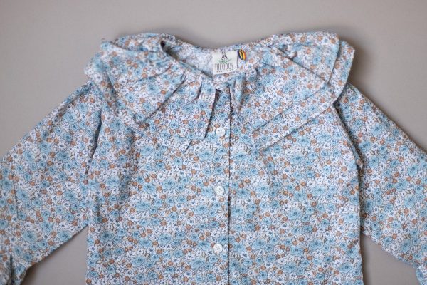 Camasa Lee este realizata dintr-un bumbac plin cu imprimeu florar. Are un guler cu volanas dublu si volanas in partea de jos la maneci.