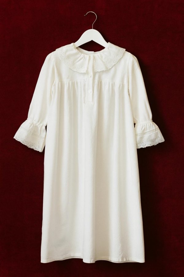 Camasa de noapte Reya este ideala pentru micile printese. Ea este realizata dintr-o panza de bumbac alba si poate sa fie purtata atat ca si camasa de noapte, cat si ca rochita.
