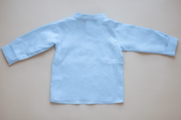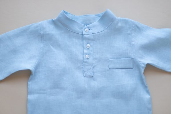Camasa Sacha este realizata dintr-un in plin, moale si placut la atingere, culoarea bleu deschis.