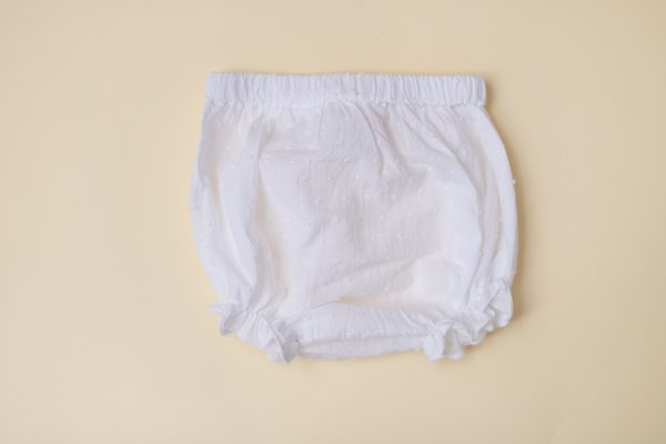 Chilotelul Lu este realizat dintr-un bumbac alb cu buline brodate.