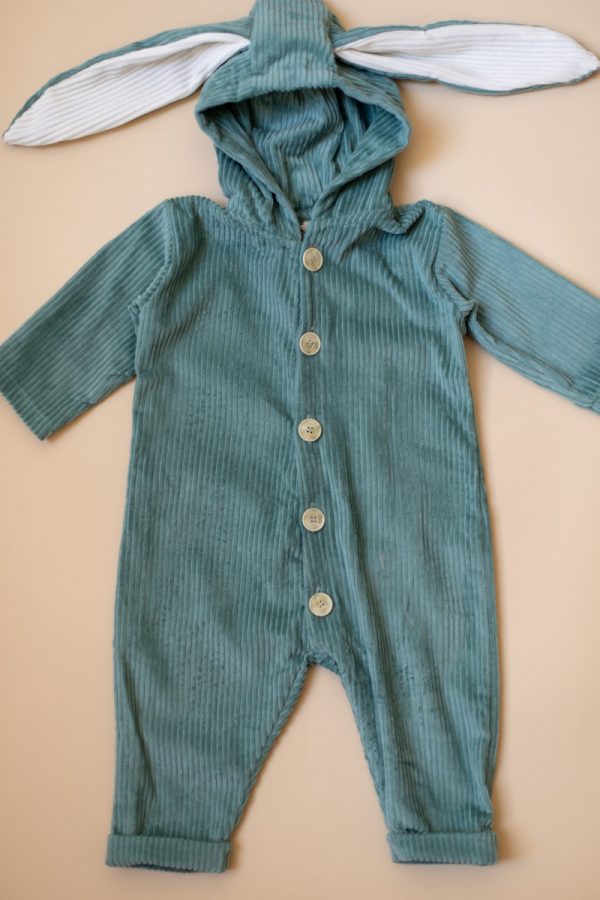 Combinezonul bunny din raiat albastru aqua este ideal pentru toamna-iarna.