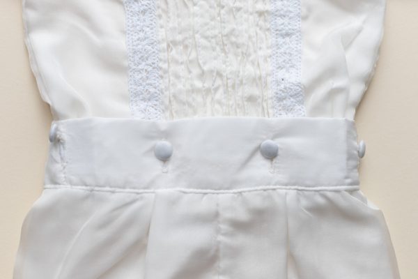 Costumul Alro este realizat dintr-o matase alba naturala, captusit la interior cu bumbac fin si accesorizat in partea din fata cu o broderie fina.