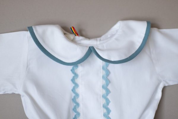 Camasa este completata perfect de o broderie din bumbac alb cu bleu.
