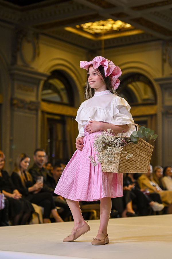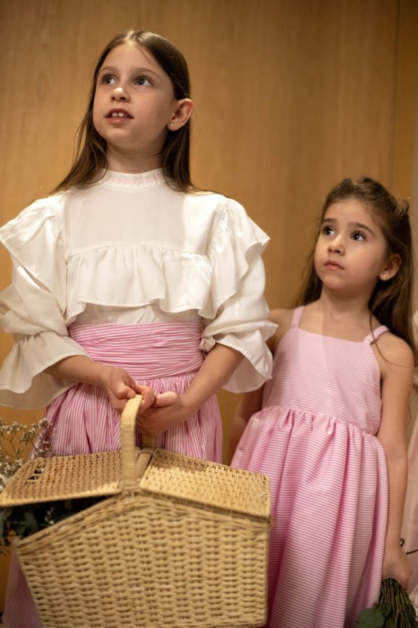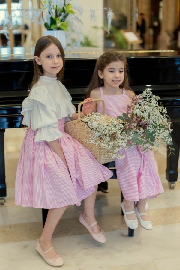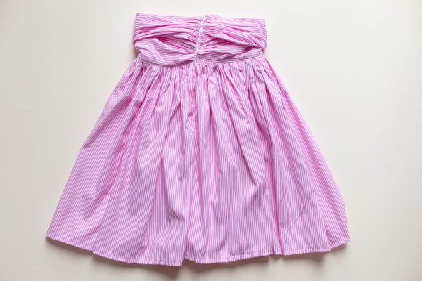 Fusta Nancy este realizata dintr-un bumbac in dungi, are brau fals si fermoar ascuns la spate.