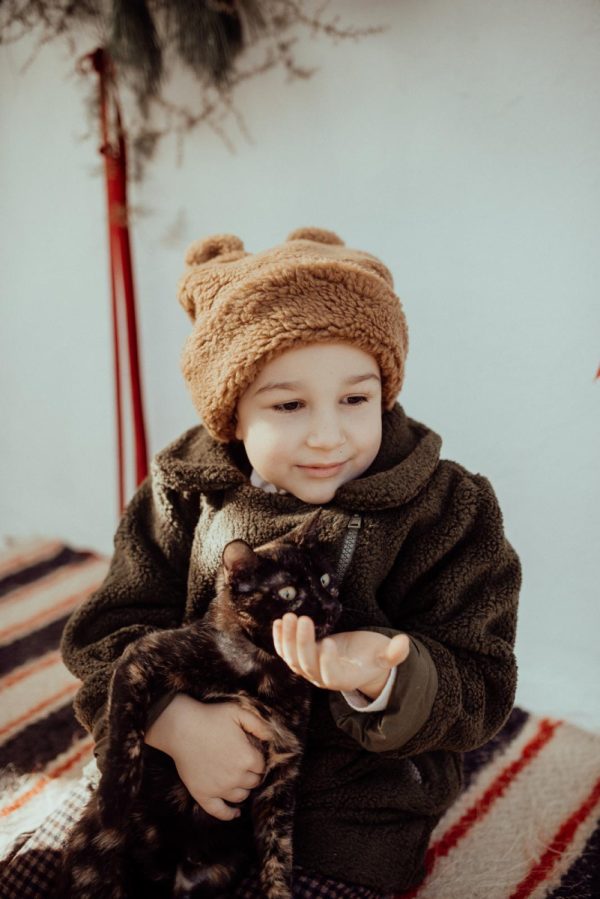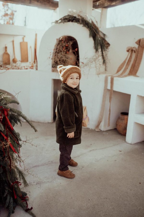 Geaca in stil bomper din plush verde kaki, din bumbac, model unisex.