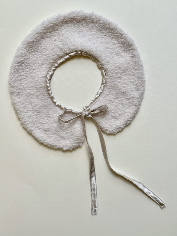 Gulerul Ollie este realizat dintr-un plush alb.