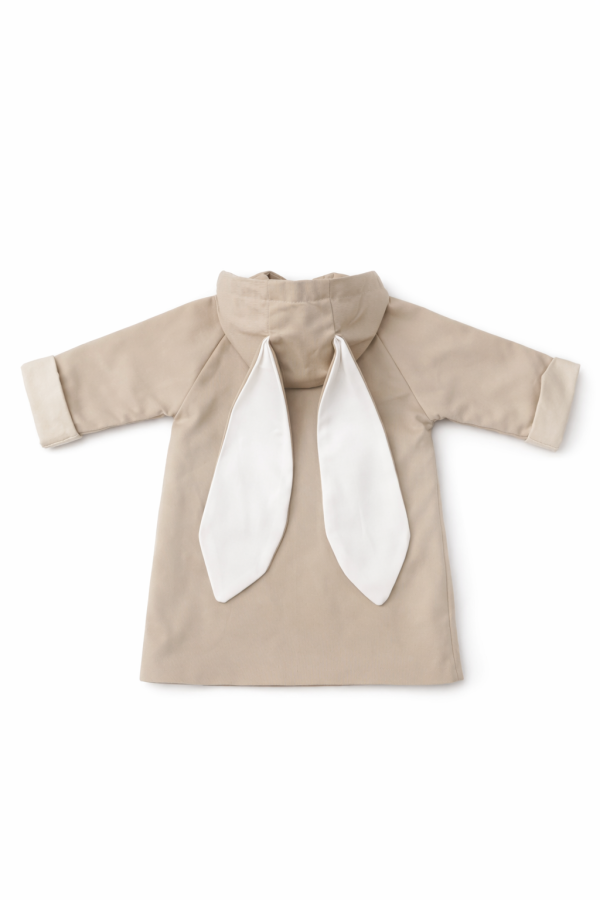 Jacheta Bunny este realizat dintr-un bumbac natural bej, dublata cu bumbac fin.