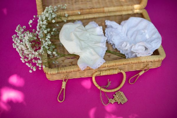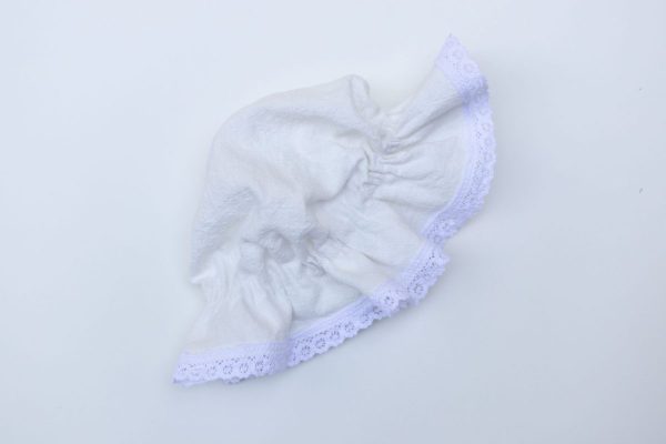 Le Chapeau din in ivory, plin, moale si placut la atingere, cu o broderie din bumbac alb.