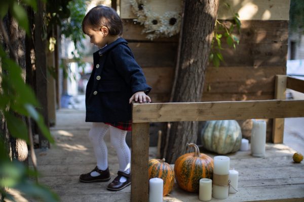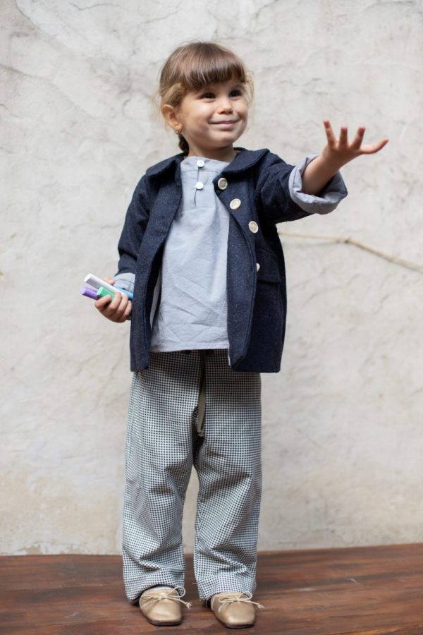 Paltonul Pierre este realizat din stofa de lana bleumarin inchis, accesorizat cu doua buzunare tip clapa in partea din fata si guler rotund.