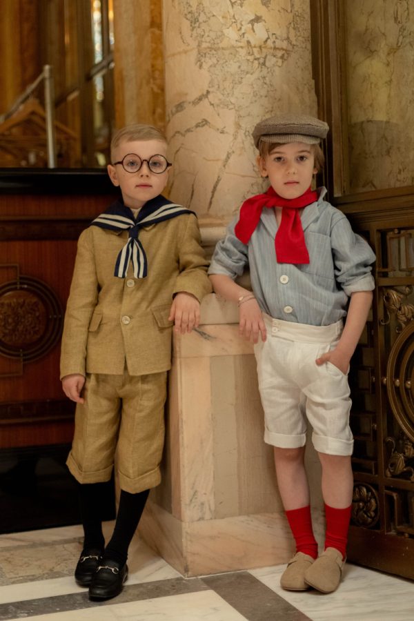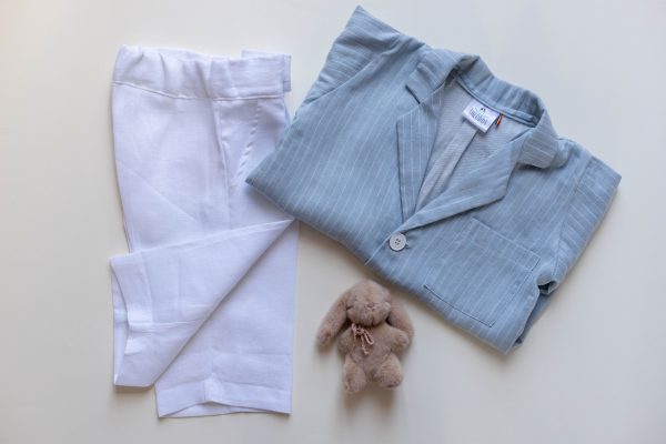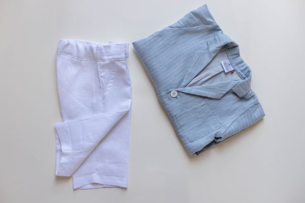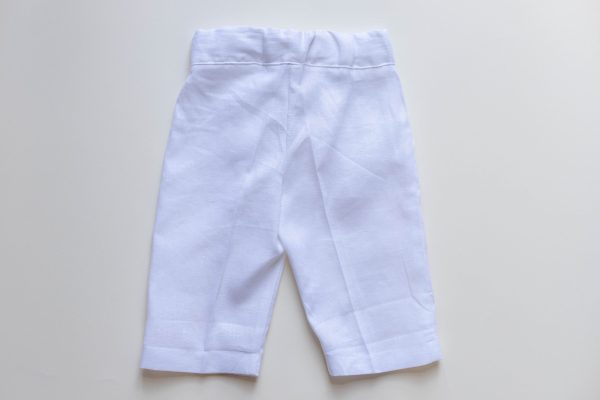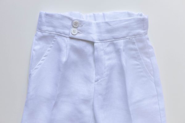 Pantalonul din in alb Ioachim realizat cu o betelie lata petrecuta si dunga pe mijloc este ideal pentru primavara-vara.
