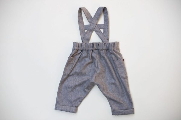 Pantalonii cu bretele Maxim sunt realizati dintr-o stofa de lana moale, placuta la atingere, culoarea grej.