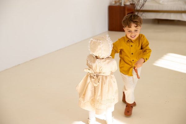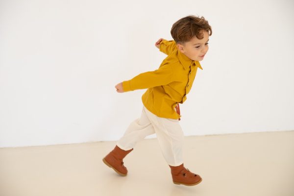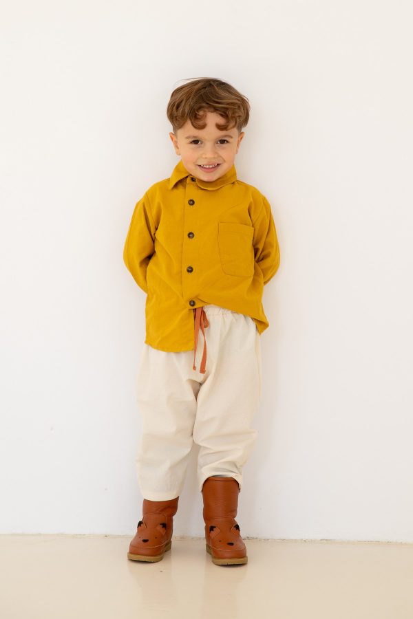 Pantalonii Cesaire sunt realizati dintr-un bumbac natural, culoarea natur, accesorizati cu buzunare aplicate la spate si un snur din bumbac maro in partea din fata.
