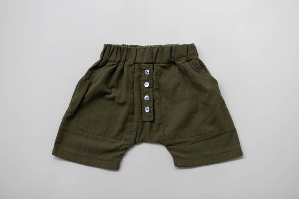 Pantalonii Marcellin sunt realizati dintr-o panza verde, din bumbac natural, au un croi lejer si sunt accesorizat cu nasturei in partea din fata si buzunare laterale.