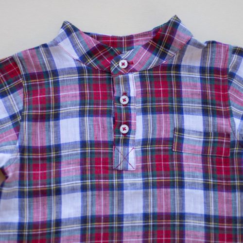 Pantalonii Roni sunt realizati dintr-o stofa din lana plina, in carouri, captusiti la interior cu bumbac fin si accesorizati cu 2 nasturei de lemn in fata.