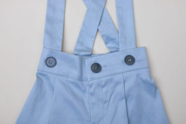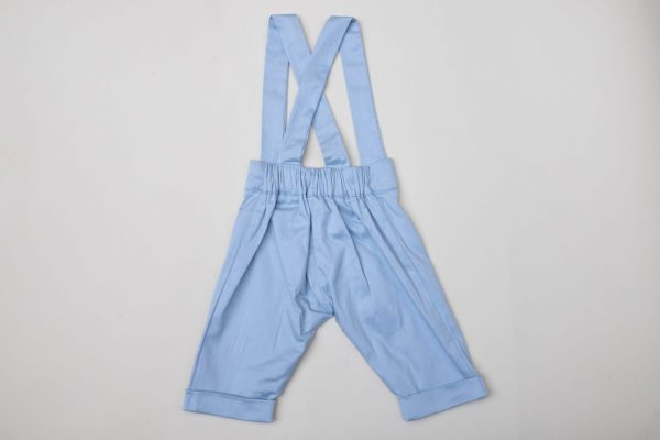 Pantalonul cu bretele Raphael realizat dintr-un bumbac plin, albastru deschis, este ideal pentru cele mai frumoase evenimente din viata micutului vostru.