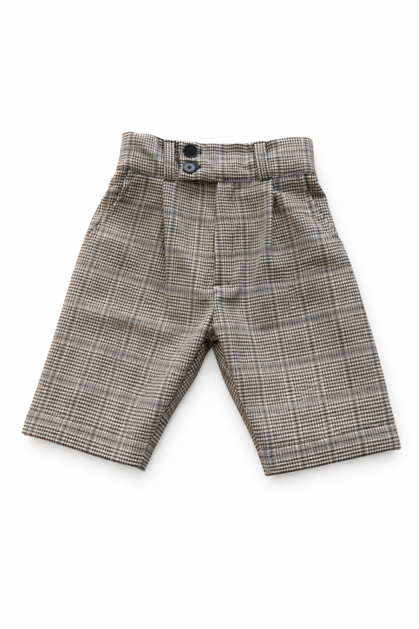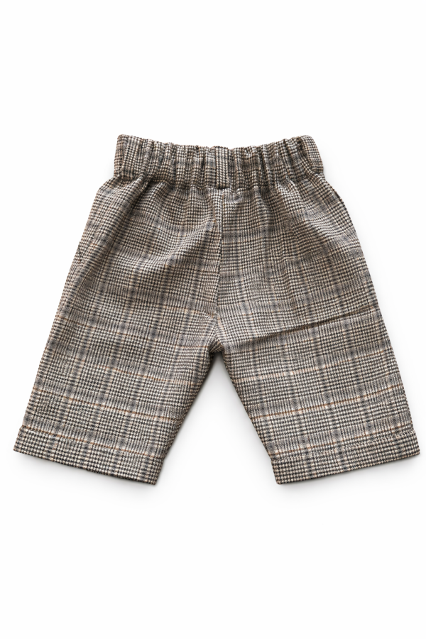 Pantalonul Louie din stofa de lana naturala, are betelie lata dubla si fald in partea din fata.