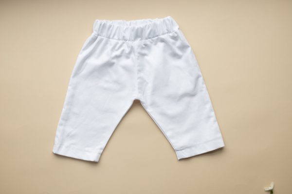 Pantalonul din in alb Michel are elastic la in talie si un croi lejer.