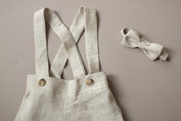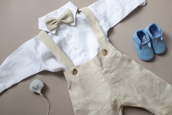 Pantalonul + Papionul Hugo sunt realizate dintr-un in premium bej, fiind ideale pentru ceremonie.