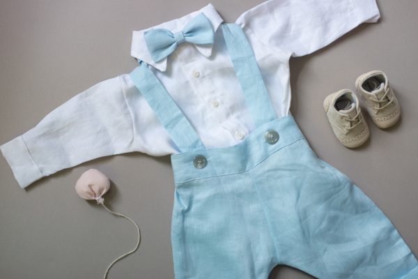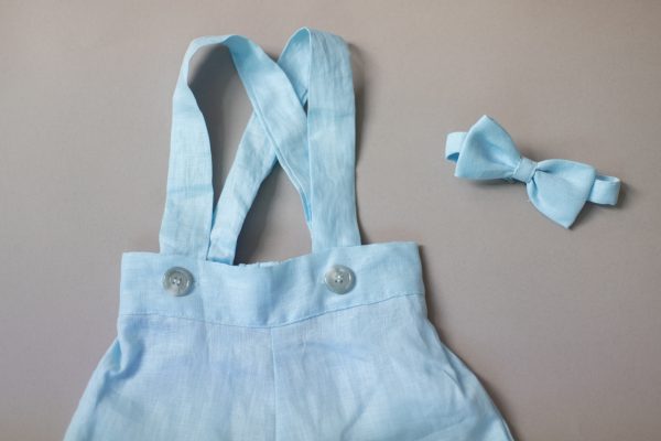 Pantalonul + Papionul Marcel sunt realizate dintr-un in premium, bleu, moale si placut la atingere, fiind un set ideal pentru ceremonie.
