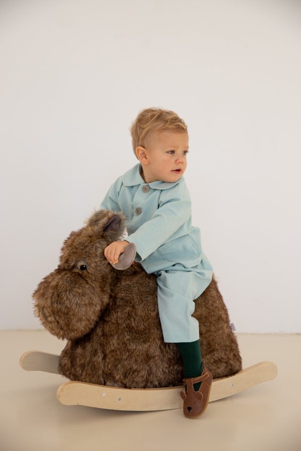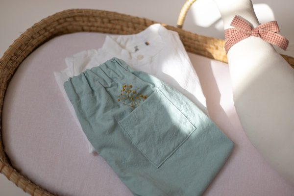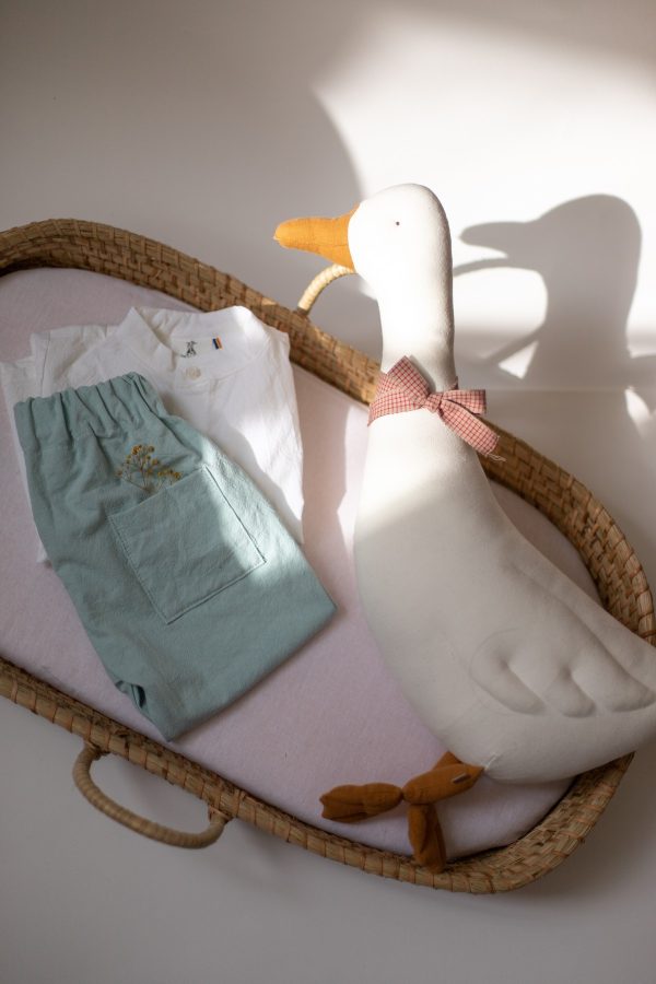 Pantalonul Philibert este realizat dintr-un bumbac tesut in Romania, culoarea albastru deschis.