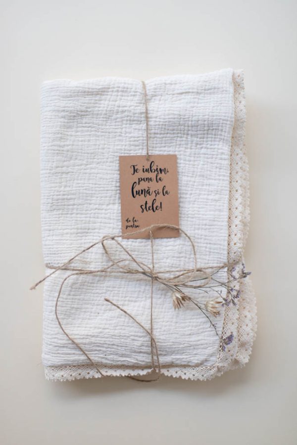 Paturica Theodor este realizata dintr-o muselina culoarea natur cu o broderie ingusta bej.