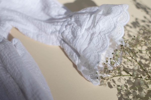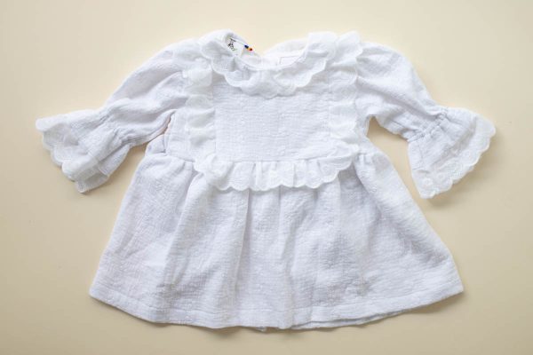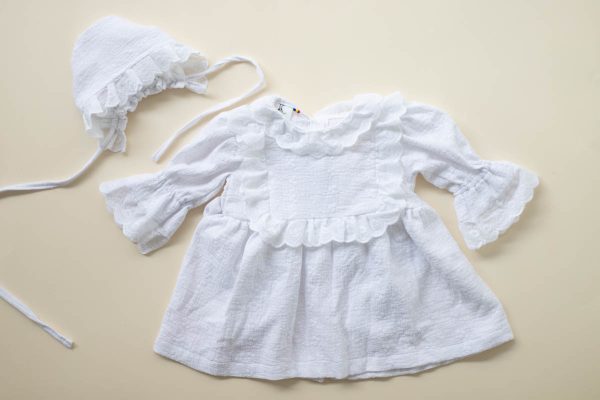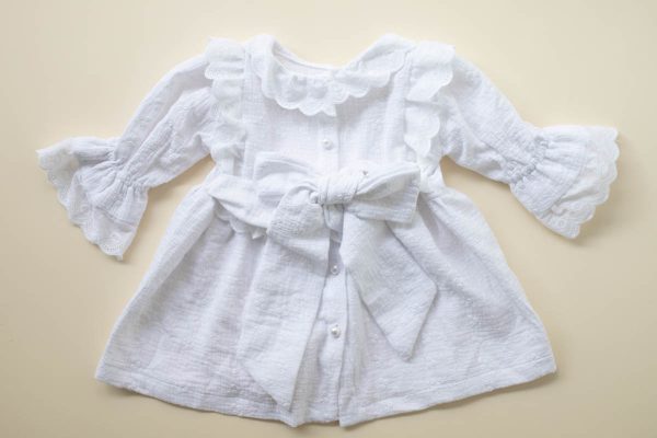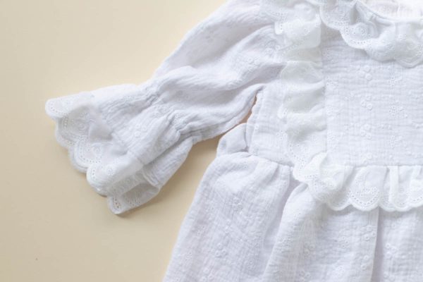 Rochia Angelique este realizata dintr-o muselina alba brodata, accesorizata cu un broderie ingusta, fina. Rochita este un model ideal pentru cele mai importante evenimente din viata copilului dumneavoastra.