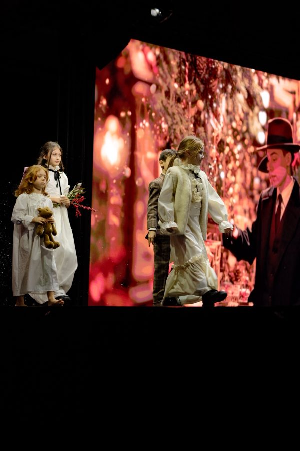 Rochia Eleonor este realizata dintr-o stofa de lana ivory, are volanas pe partea din fata, un brau fals si un snur din catifea negru, detasabil.