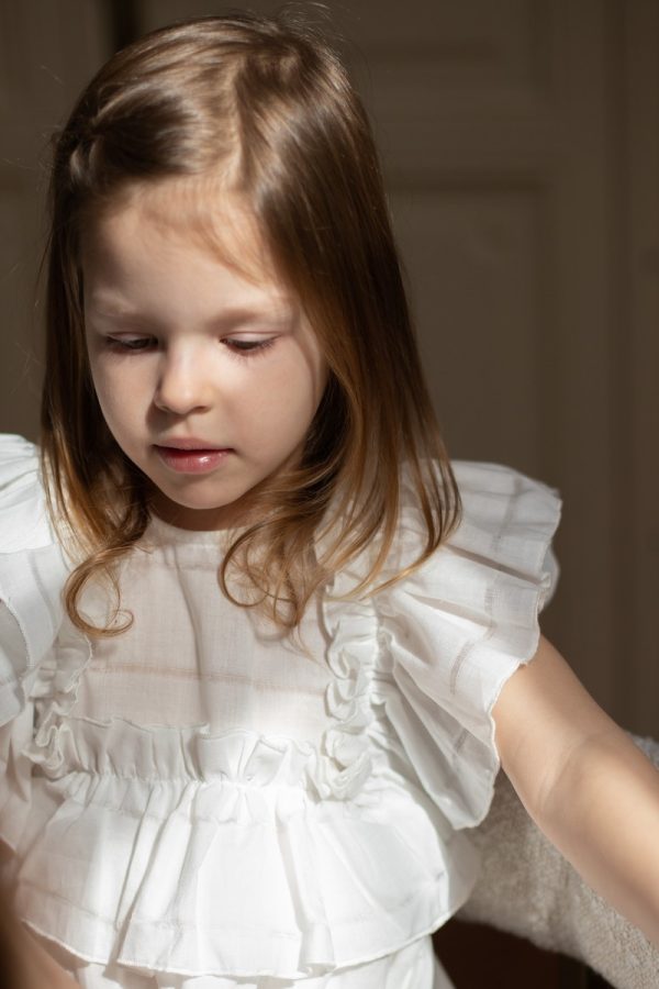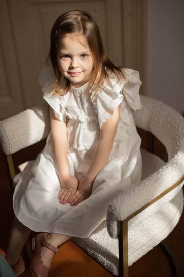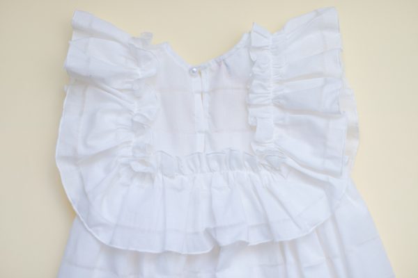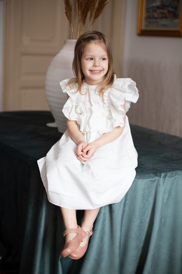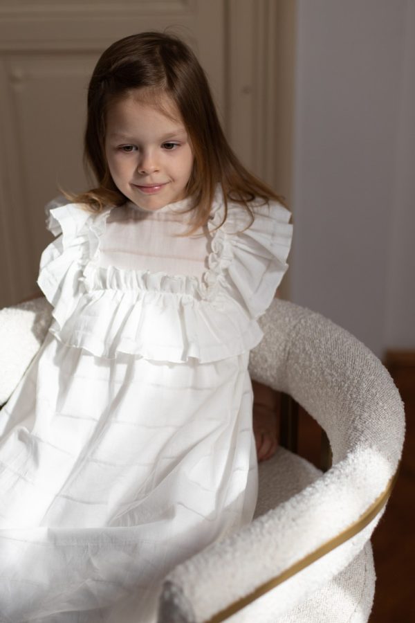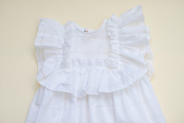 Rochia Irene este realizata dintr-un bumbac alb, captusita la interior cu un bumbac moale.