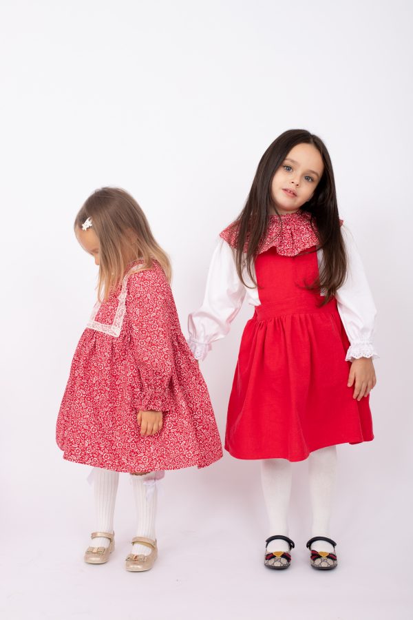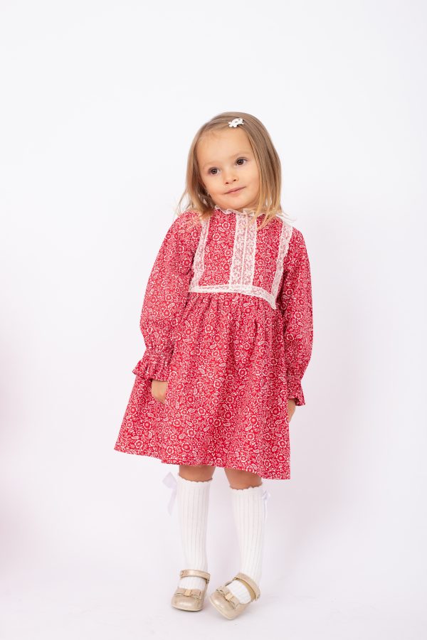 Rochia Isabelle din bumbac rosu cu imprimeu floral alb, este ideala pentru cea mai frumoasa perioada din an, fiind accesorizata cu nasturei tip perla la spate si o dantela fina in partea de jos, rochita Isabelle o sa fie foarte indragita de micile printese.