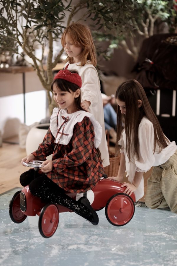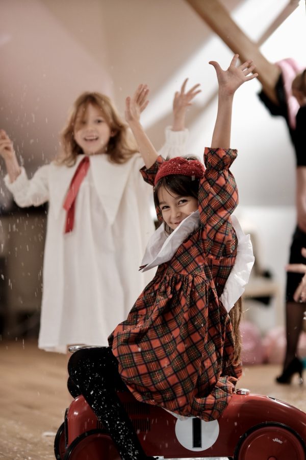 Rochia Marilu realiazata dintr-un bumbac in carouri combinata cu bumbac alb in partea de sus este ideala pentru sarbatorile de iarna.