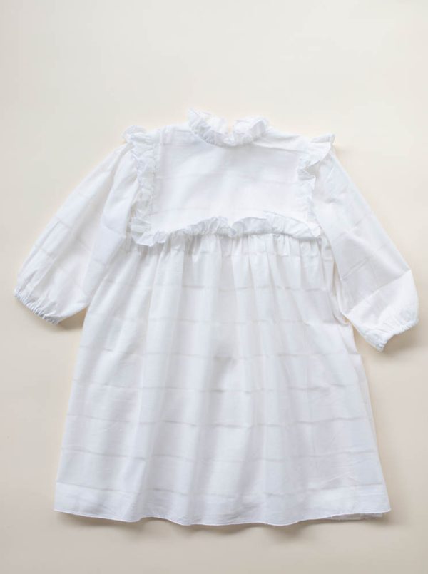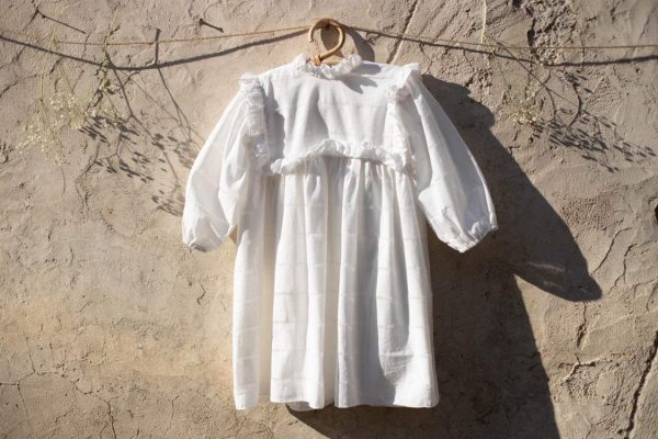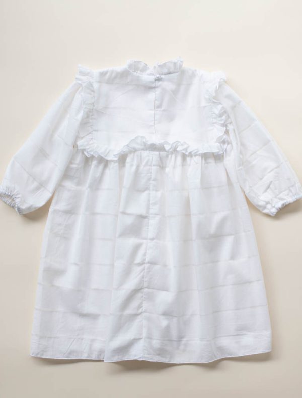 Rochia Marthe este realizata dintr-un bumbac alb, fin, cu model, captusita la interior cu o panza din bumbac.