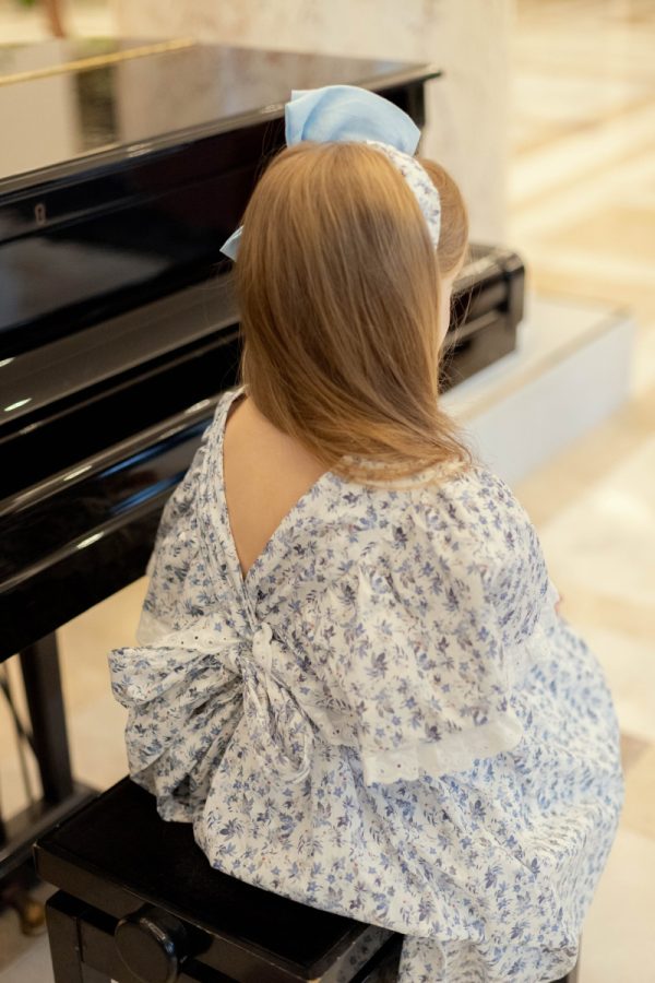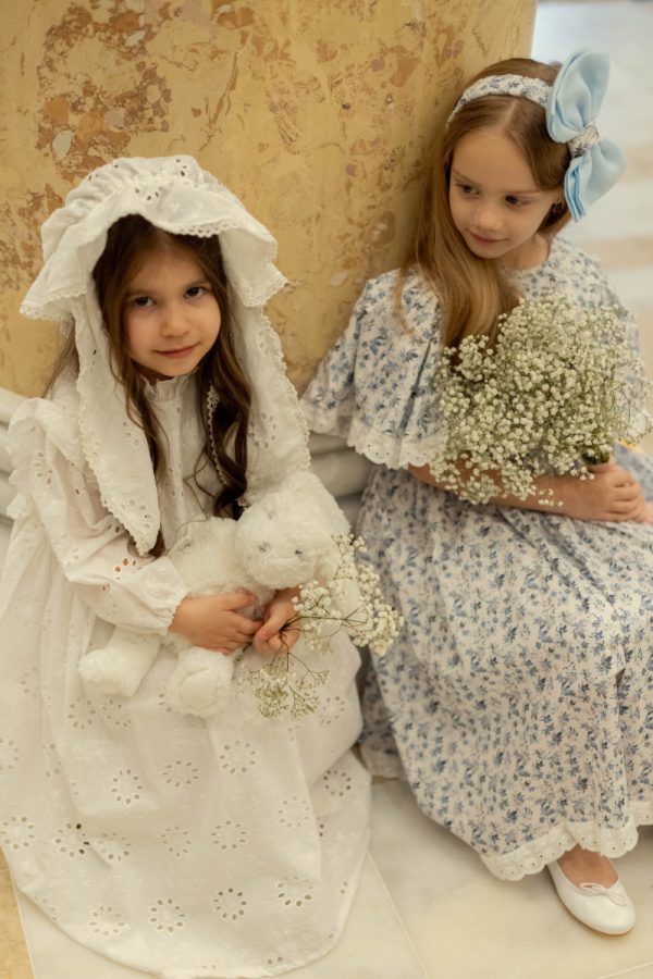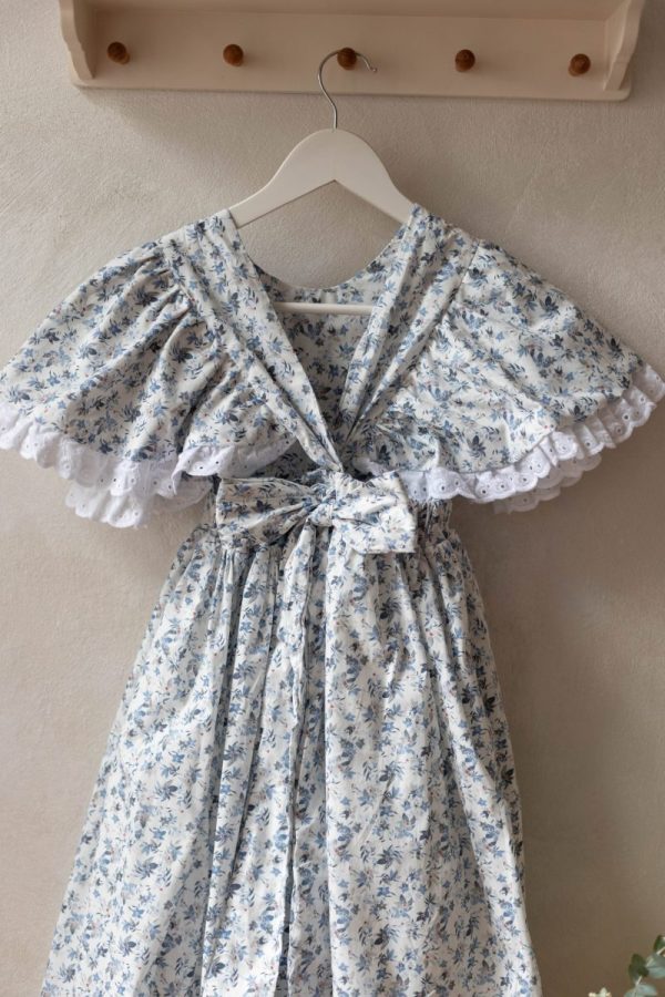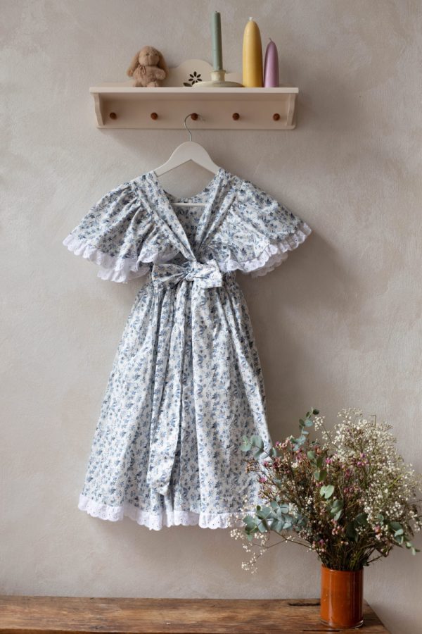 Rochia Mathilda realizata dintr-un bumbac cu imprimeu floral este ideala pentru primavara-vara. Este dublata in partea de jos pentru un plus de volum si accesorizata cu o broderie din bumbac alb.