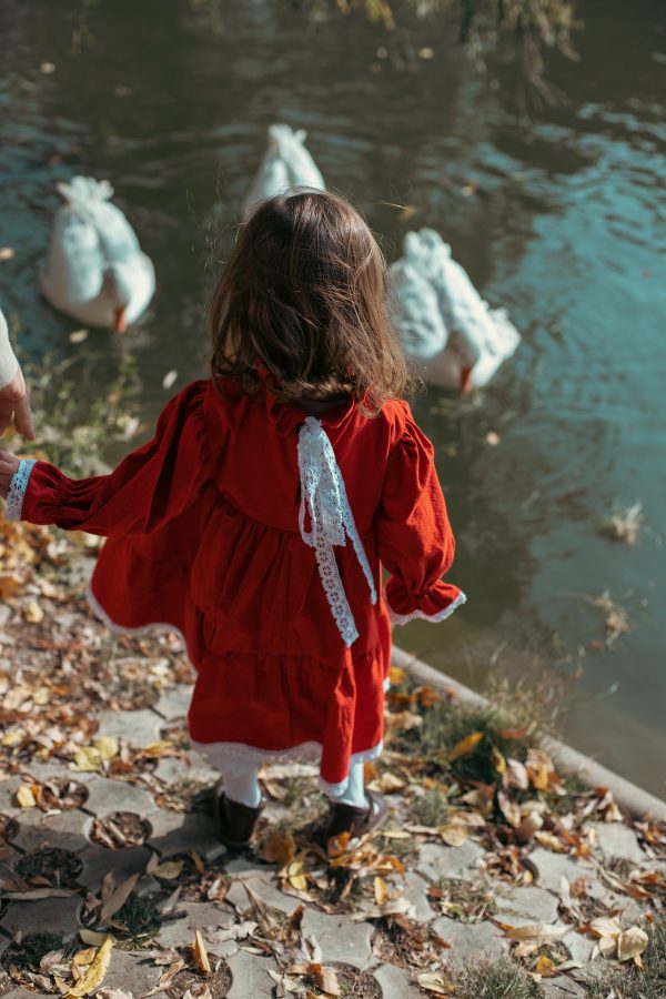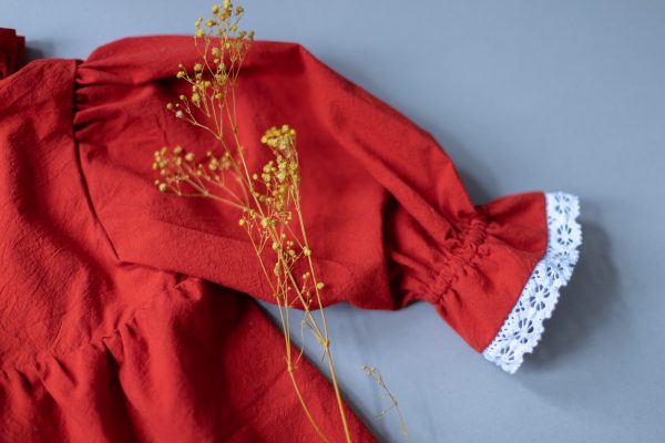 Rochia Simone este realizata dintr-un bumbac natural rosu, captusita la interior cu bumbac fin, ceea ce o face ideala pentru toamna-iarna, mai ales pentru perioada Craciunului.