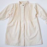Rochia Vivien este realizata dintr-o muselina organica bej, accesorizata cu o maneca bufanta si o broderie din bumbac natural bej deschis.