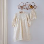 Rochia Zina este realizata dintr-o panza din bumbac natur, accesorizata cu un guler rotund si o broderie din bumbac natur.