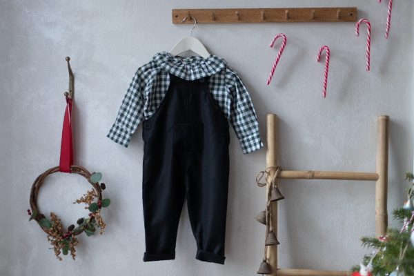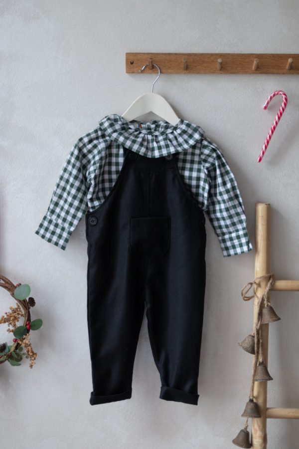 Salopeta Ara este realizată dintr-o stofa din lână naturala.