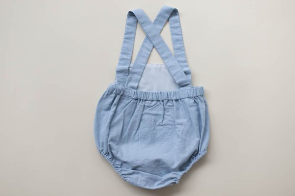 Salopeta Dion din in moale bleu este ideala pentru cele mai importante evenimente din viata micutului vostru, poate fi asortata cu body-ul din in alb cu acelasi nume.