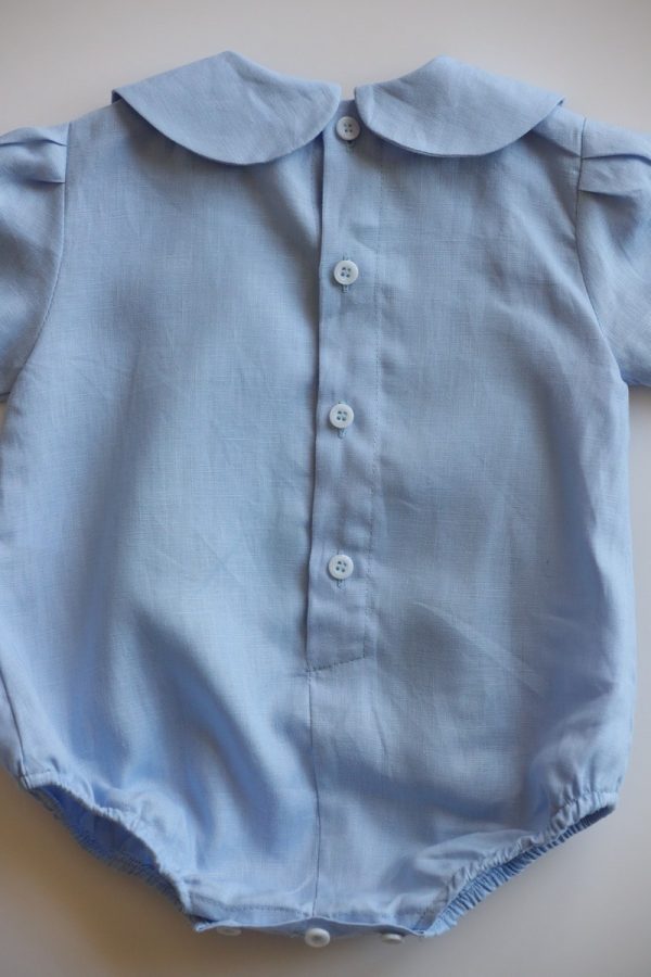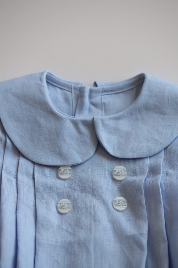 Salopeta Kylian este ideala pentru cele mai importante evenimente din viata celui mic. Este realizata dintr-un in moale de culoare bleu si accesorizata cu nastureii din fata. Inchiderea se face la spate, prin nasturei.