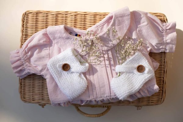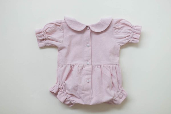 Salopeta Liliane este realizata dintr-o panza naturala din bumbac 100% culoarea roz pudra.