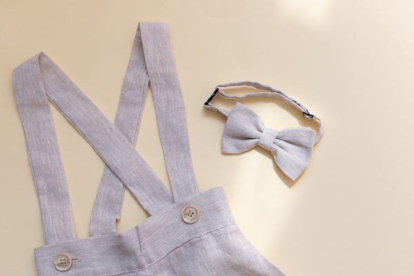 Salopeta + papionul Bruno realizate dintr-un in premium bej, sunt ideale pentru evenimentele importante din viata micutului vostru.