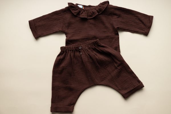 Setul Lee realizat dintr-o muselina organica, culoarea maro ciocolata este ideal pentru vara.