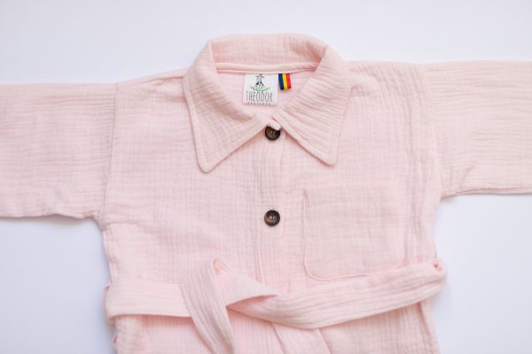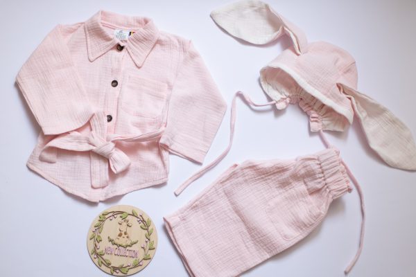Setul Leticia este realizat dintr-o muselina roz pal, moale si placuta la atingere. Setul este format din camasa si pantalonul cu acelasi nume.