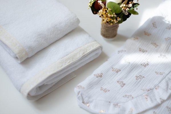 ~ doua prosoape din bumbac 100 % cu broderia fina aurie, grosime 650 gr/mp, dimensiuni: 70 x 140 cm si 50 x 90 cm